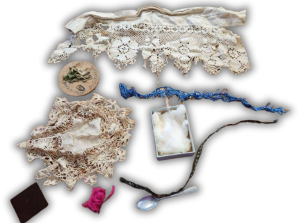 Calla bid and took the box for $20 and when she was able to fully explore its contents, found war rations, an old handkerchief, a spoon, some recipe cards, and even the names of some of the characters she would soon write her creative journal entry about.